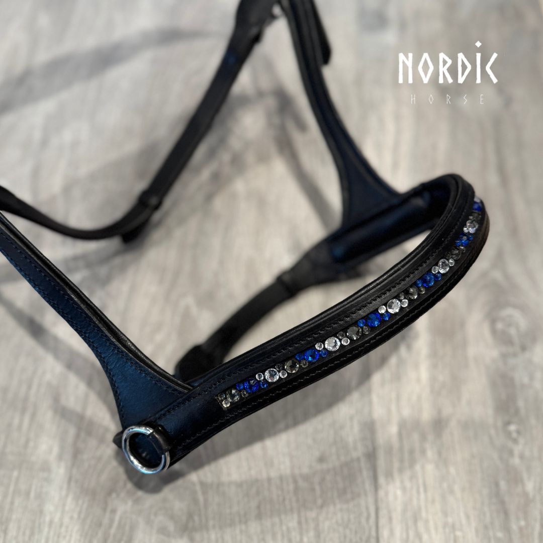 Sidepull med sten i blåt mønster på på næsestykket.